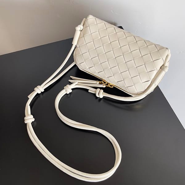 Intrecciato nappa leather pouch with adjustable tubular strap