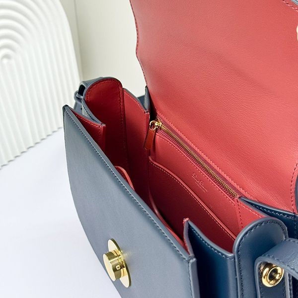 Made of high-quality calfskin, it comes with an adjustable shoulder strap and metal buckles and accessories. It can be worn cross-body or over the shoulder, and the metal ring is decorated with the brand logo and connected to the shoulder strap by a metal ring. There is also a spacious internal pocket with an expandable divider. Lined with ivory-colored suede fabric, the interior has a card pocket, a zipper pocket, and three divider pockets with ring closures. The internal pocket on the flap features Loro Piana's new signature ring-shaped button and a laser-engraved logo.