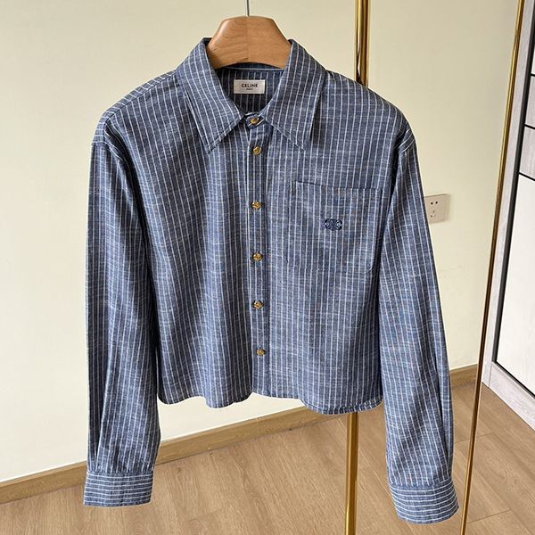 Celine Triomphe embroidered n-grade corduroy cropped shirt
