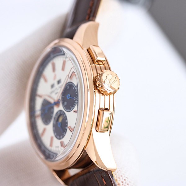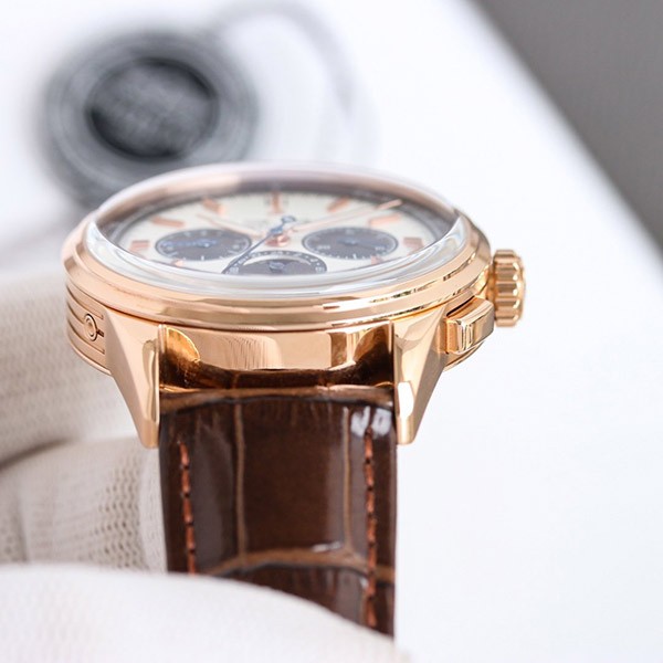 Specifications: Chronograph, Triple calendar, Moon phase, See-through back