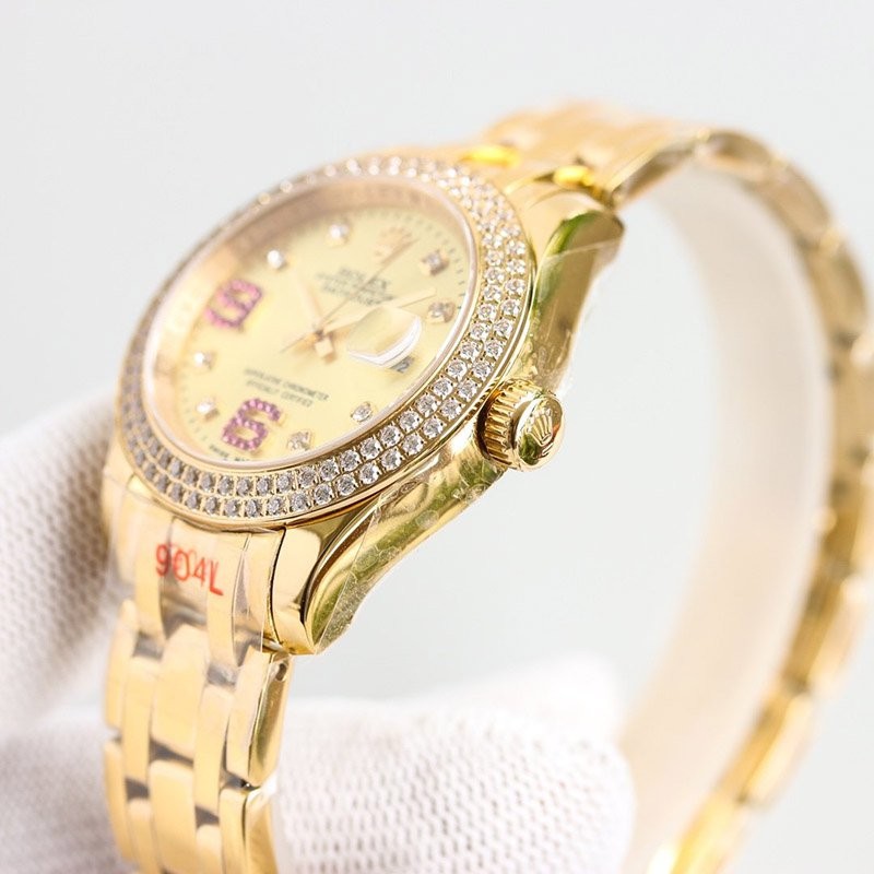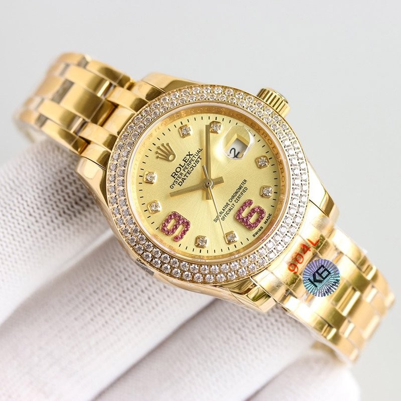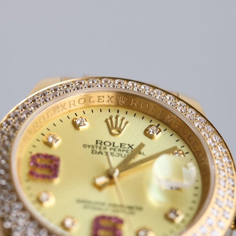 Case material: Oyster, 18K yellow gold, diamonds and diamonds on the outer ring