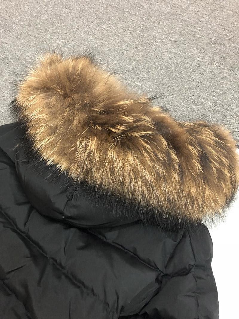 Hood with stretch drawstring and removable frost fox fur trim