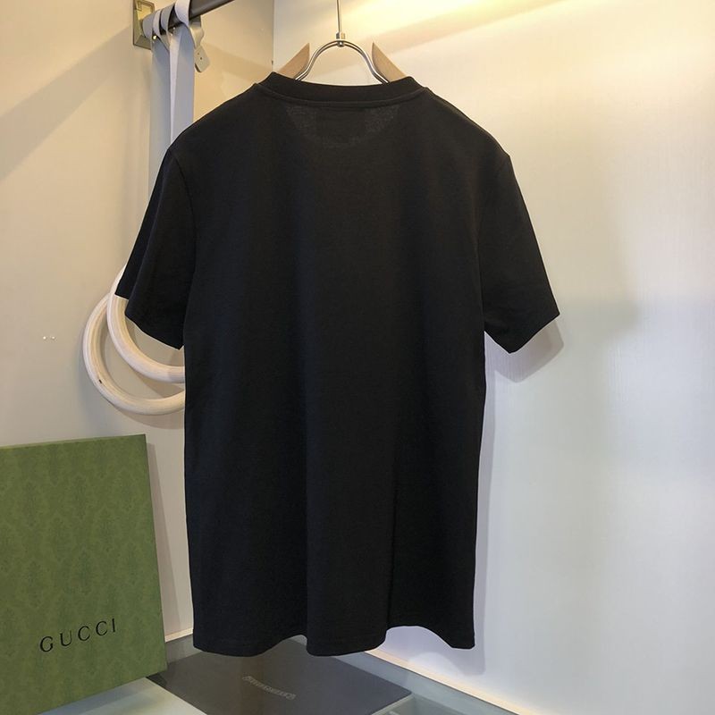 Popular classic ☆ Gucci logo cotton T-shirt copy with back flower applique 2 colors