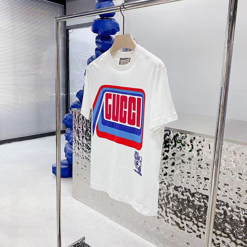 Classic and popular ☆ Gucci logo cotton T-shirt parody back flower applique