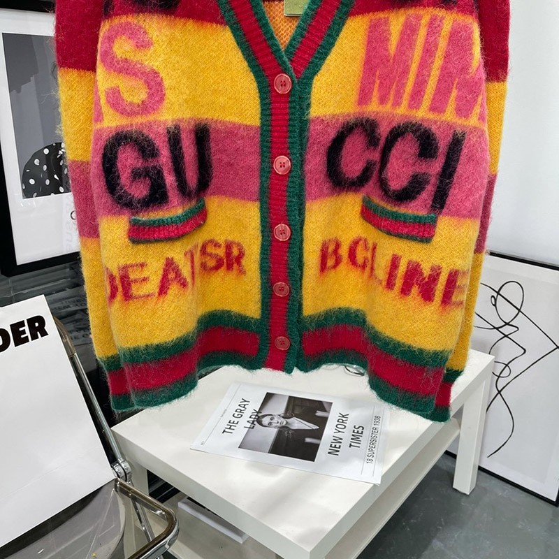 Gucci 100th Anniversary Cardigan Tops Copy Brushed Mohair