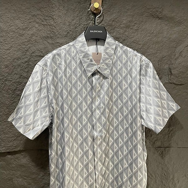 Dior new short-sleeved shirt replica CD Diamond silk twill 2 colors