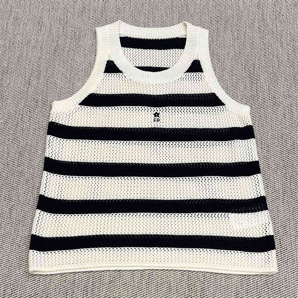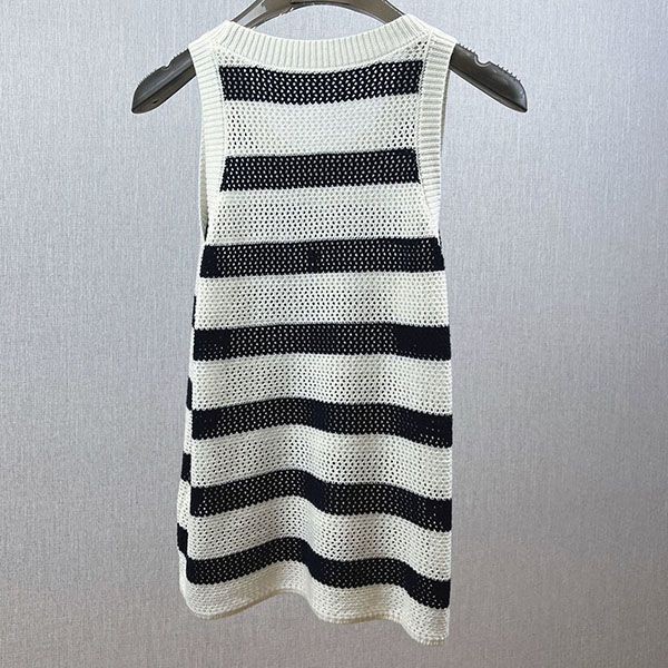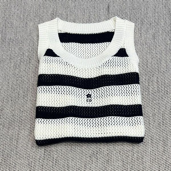 Dior Sweater Sleeveless Stripe Embroidery Casual