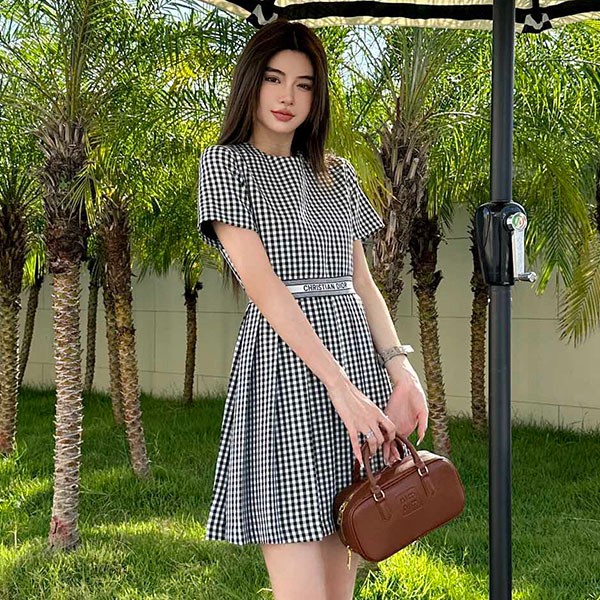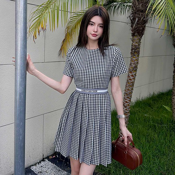 Dior replica gingham check mini dress