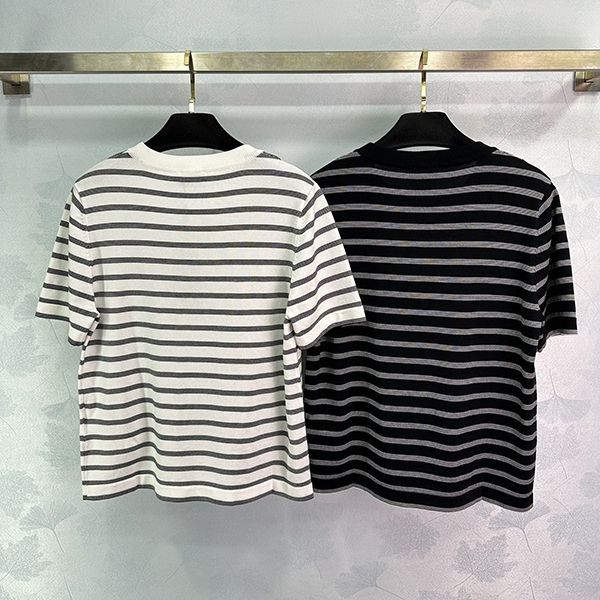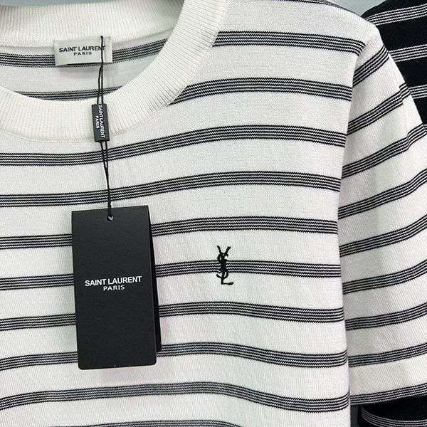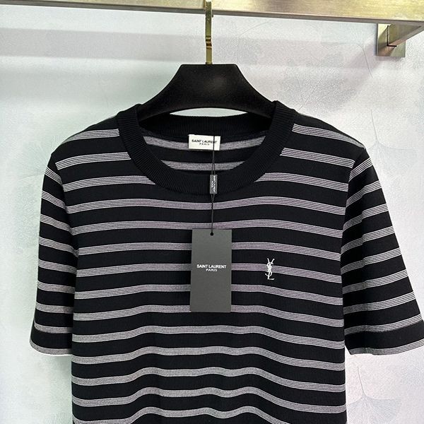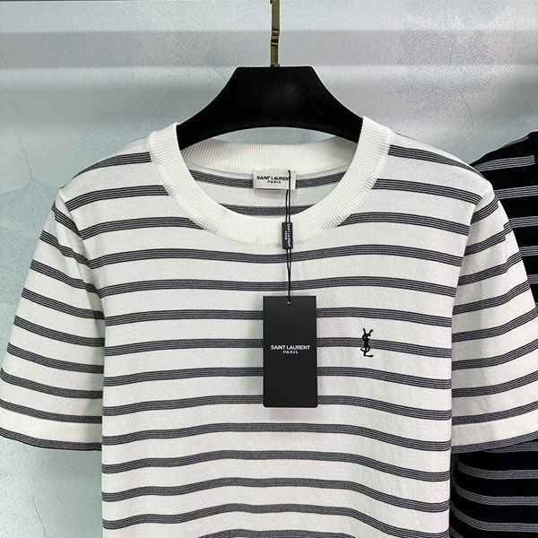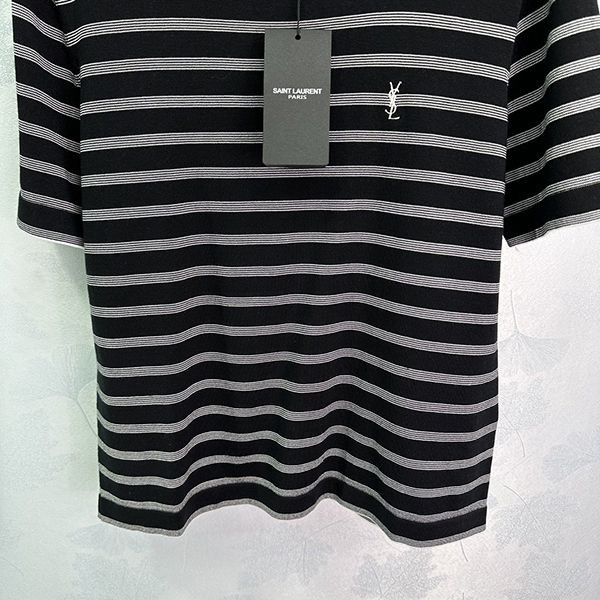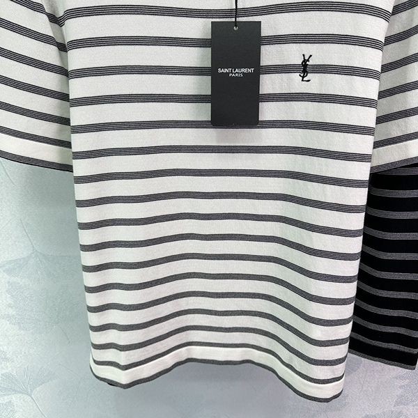 2024SS Saint Laurent striped T-shirt replica short sleeve crew neck