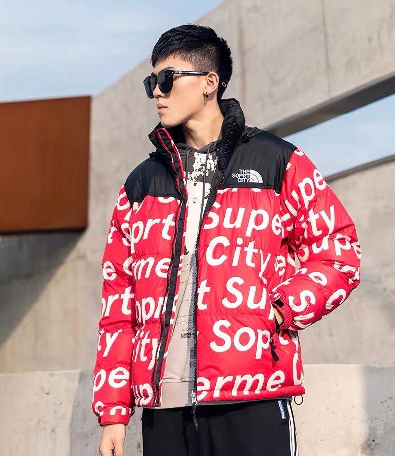 Nuptse fake Supreme North Face Down Leather Down Jacket 2 colors