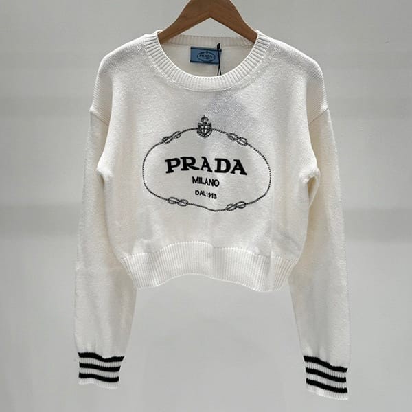 Prada Logo Embroidered Cotton Cropped Sweatshirt Replica 3 Colors