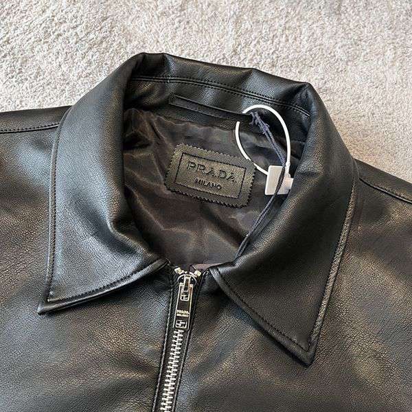 Super popular Prada leather jacket with triangle logo copy