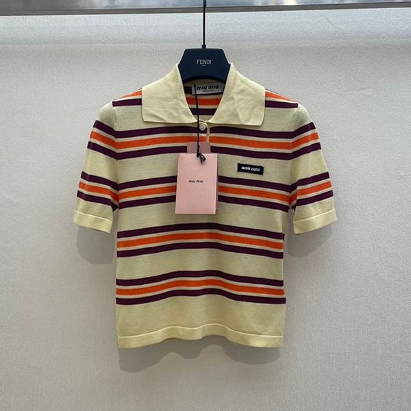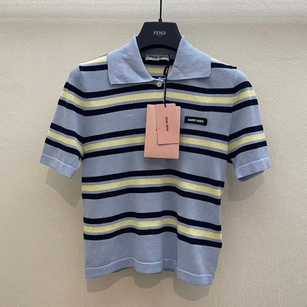 Miu Miu Fake Cotton and Silk Knit Polo Shirt 2 Colors MML880_14AX_F0061_S_OOO