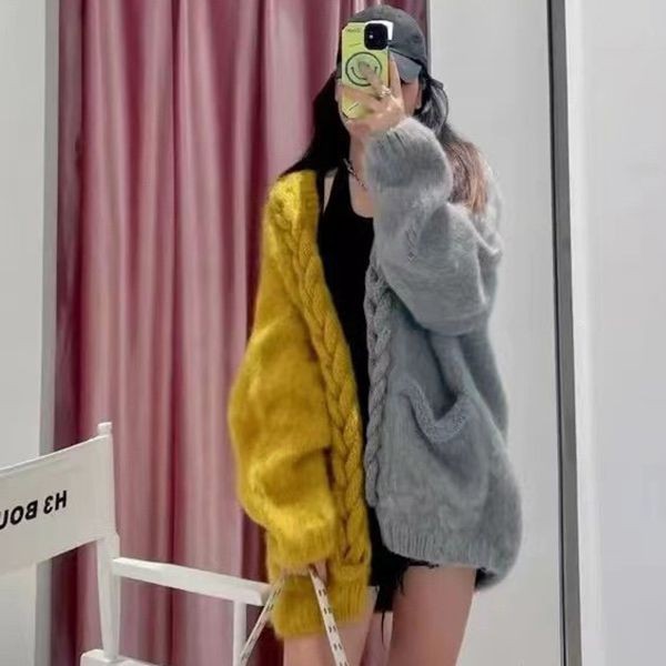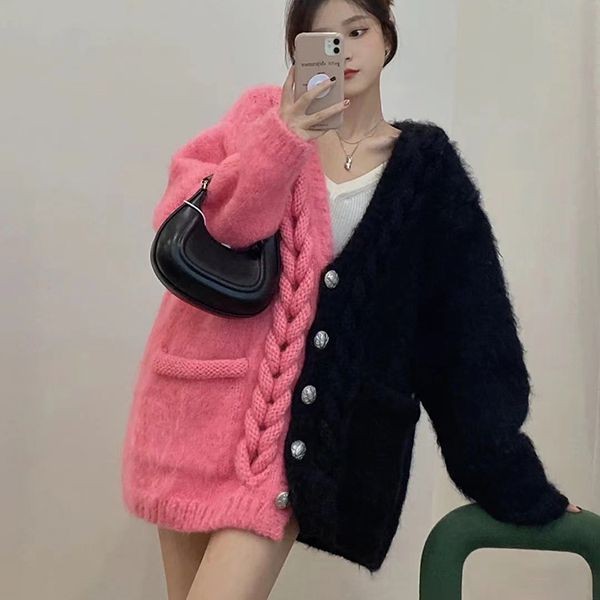 ?Mohair color block honeycomb knit cardigan