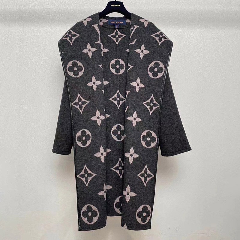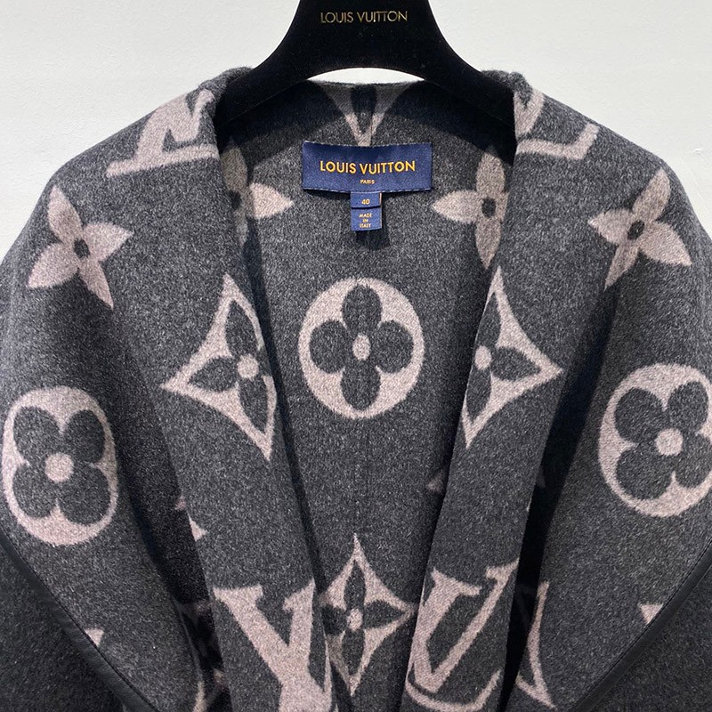 Louis Vuitton Coat Fake Monogram Jacket Long Coat Gray Popular 1A82GP