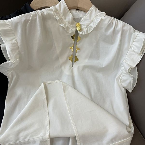 Louis Vuitton ruffled blouse, ruffled top, short sleeve copy