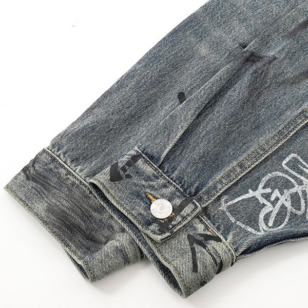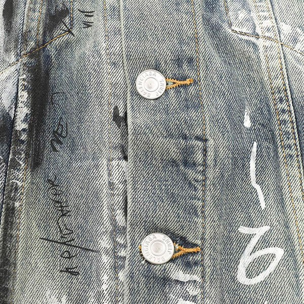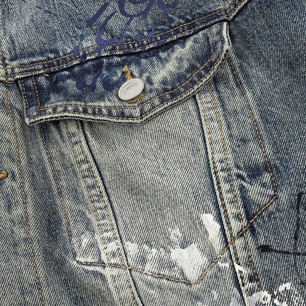 Blue Japanese denim with graffiti print