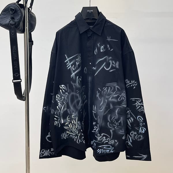 Balenciaga GRAFFITI Shirt Oversized Long Sleeve Shirt Replica 2 Colors 738843TNM604850