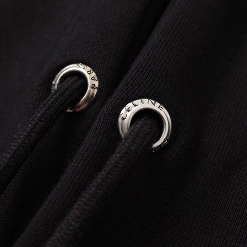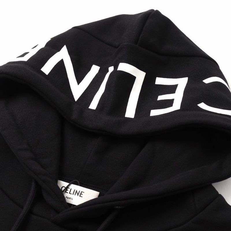 Celine Logo Black Cotton Fleece Hoodie Fake 2Y497670Q.38AW