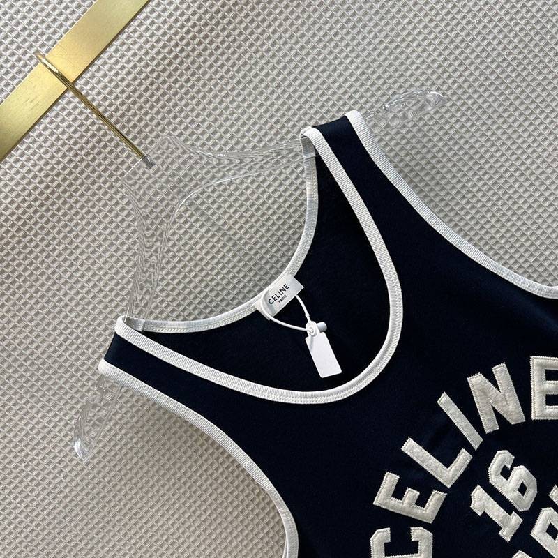 Embroidered Celine 16 Tank Top replica/Cotton Jersey 2X11B671Q.38AW