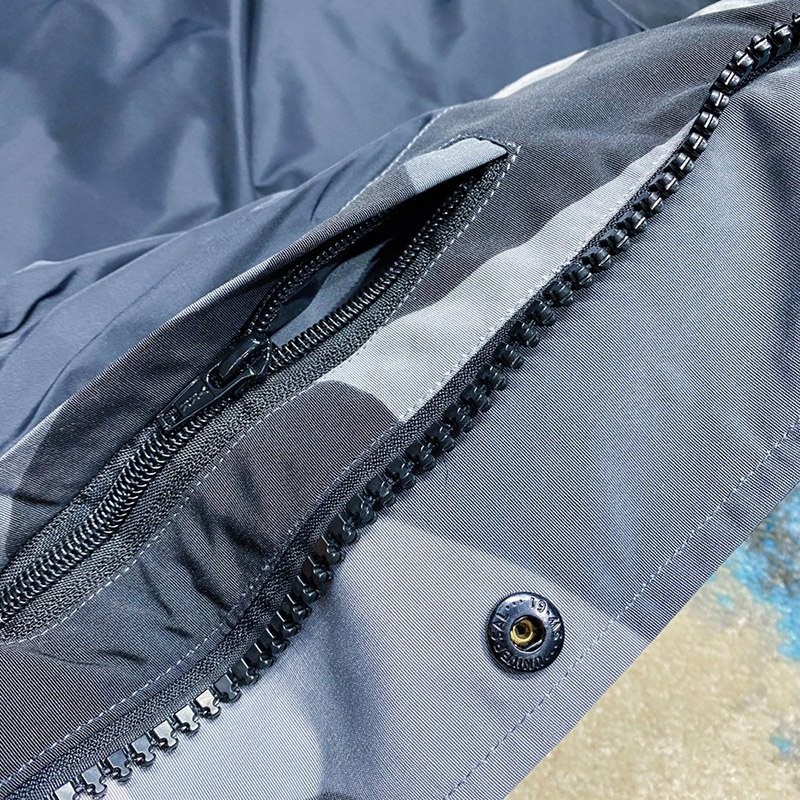 Front zipper with snap placket to prevent drafts