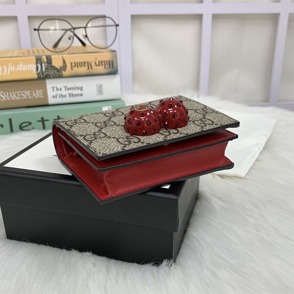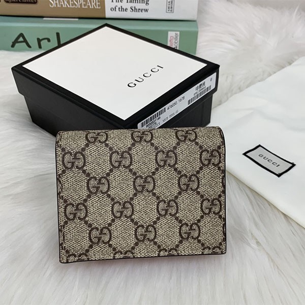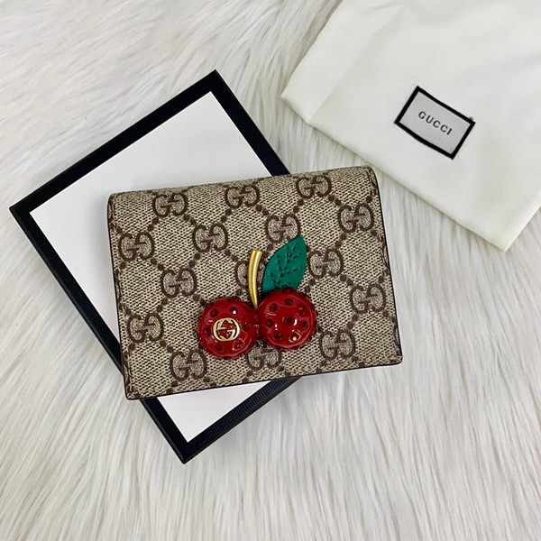Gucci Cherry Wallet Copy★Cute Cherry GG Supreme Canvas Card Case (with Coin & Bill Compartment)