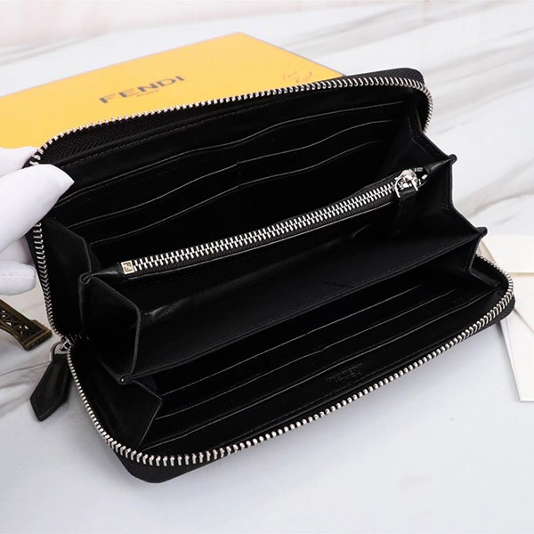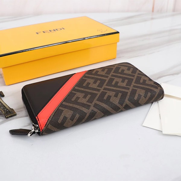Fendi FF logo wallet long wallet replica zip leather