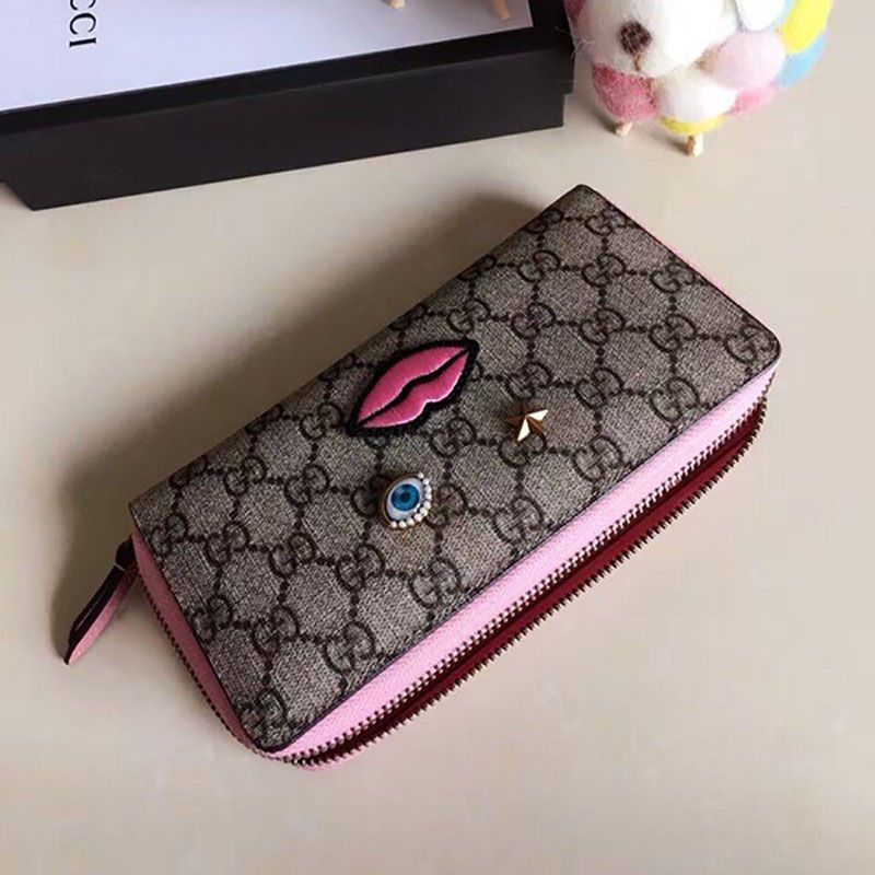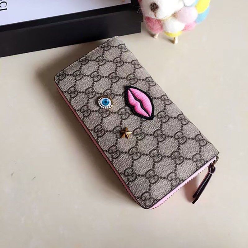 Gucci GG Supreme face motif copy round zipper long wallet 431392