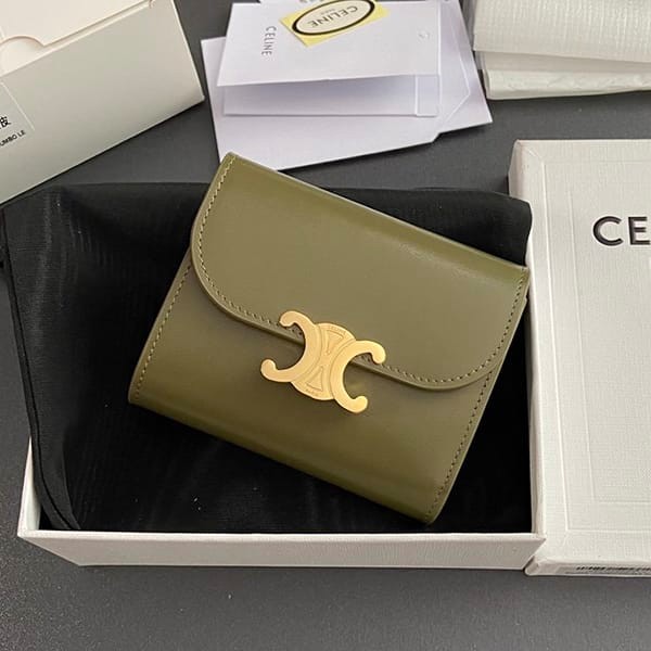 Celine small wallet Triomphe wallet olive imitation