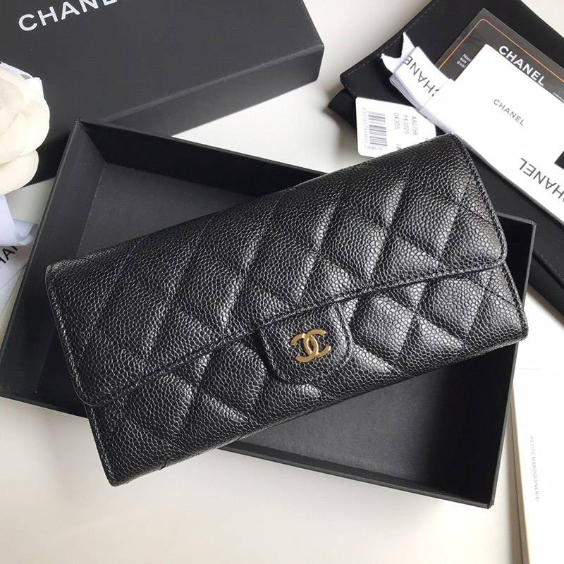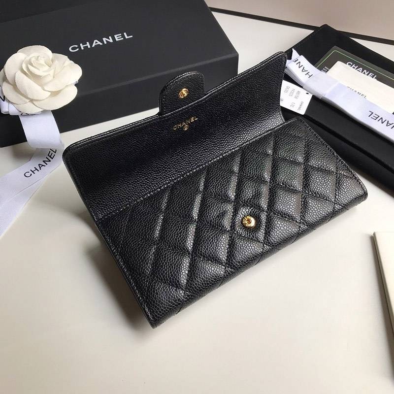Chanel Super Copy Two-Fold Flap Long Wallet Caviar A80758