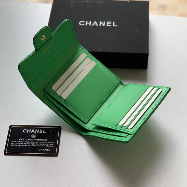 Chanel's popular Matelasse series, this is a three-fold mini wallet that is perfect for small bags.