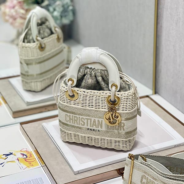 Lady Dior Fake Basket Bag Wicker & Dior Oblique