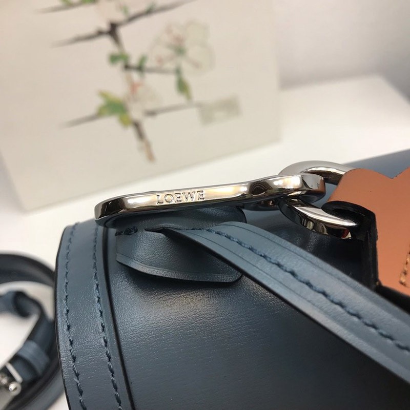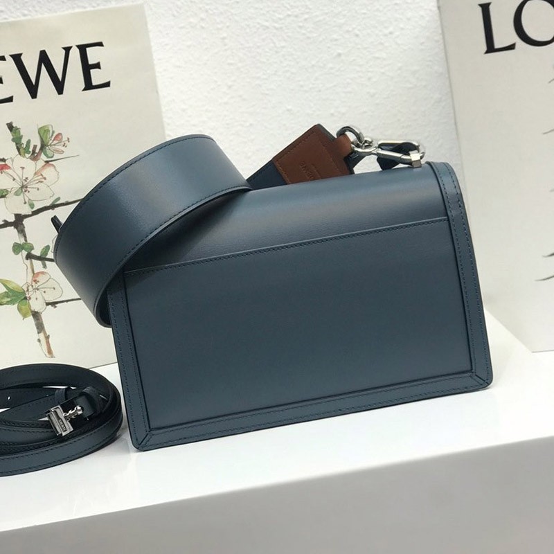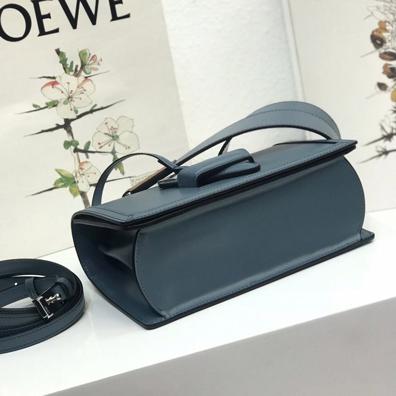 A bold, petite version of Loewe's most sophisticated bag design. The edges are very contemporary. Made from shiny box calf. Its small size makes it perfect for evening events or daytime outings. It has a sleek silhouette and a unique triangular metal closure with an embossed Loewe logo. This season's Barcelona bag features new wider metallic D-rings and interchangeable thick and short straps for a completely different feel. Key features: Black hand-painted edges, nappa lining. One interior compartment.