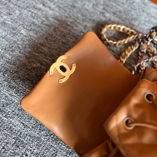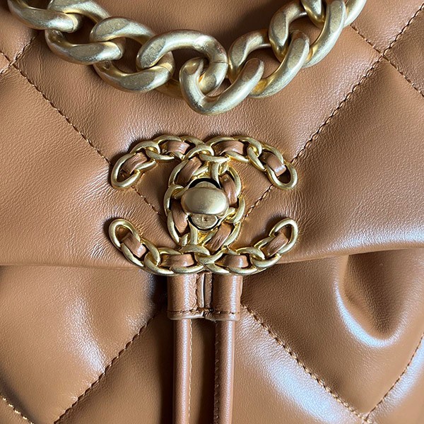 > Bags > Backpacks > This Chanel 19 backpack is perfect in both design and storage capacity. The orange color with CC logo highlights Chanel's elegance.