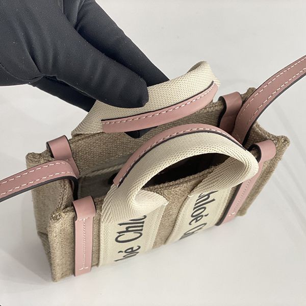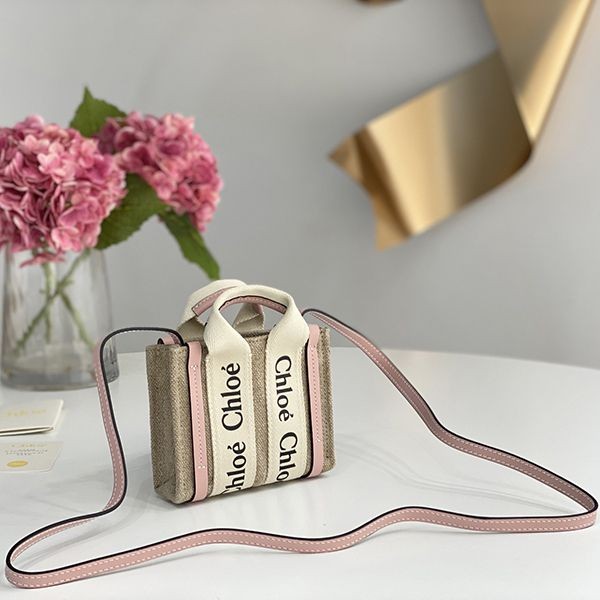 Chloe WOODY Mini Tote Bag Linen Canvas