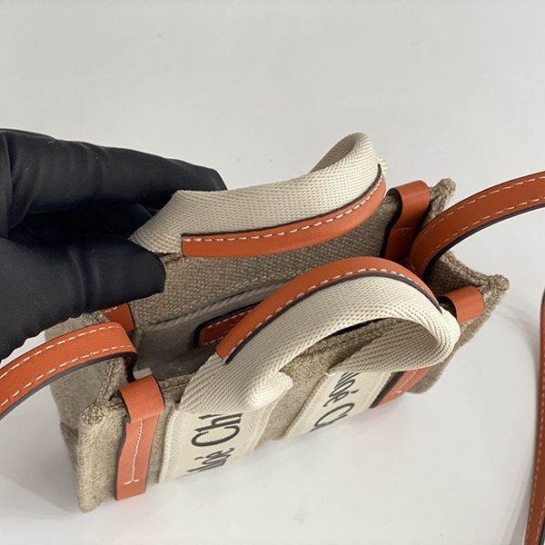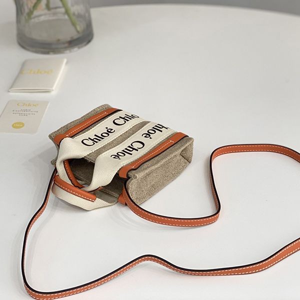Chloe WOODY Replica Mini Tote Bag Linen Canvas