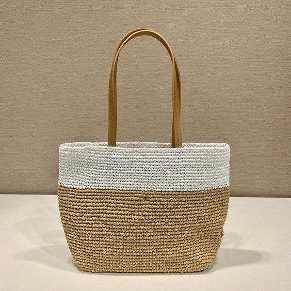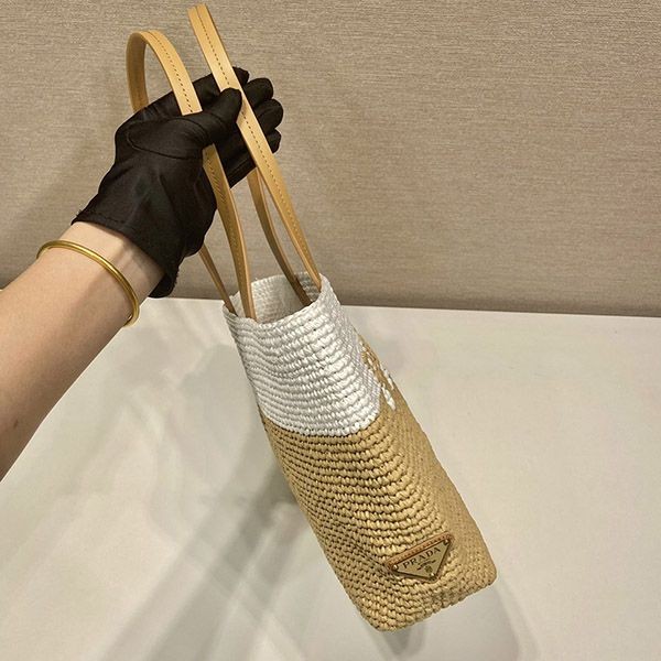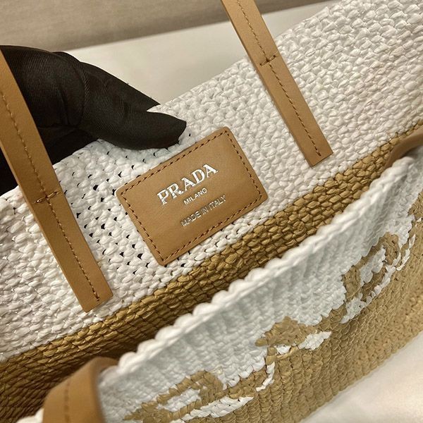 Prada raffia x leather tote bag