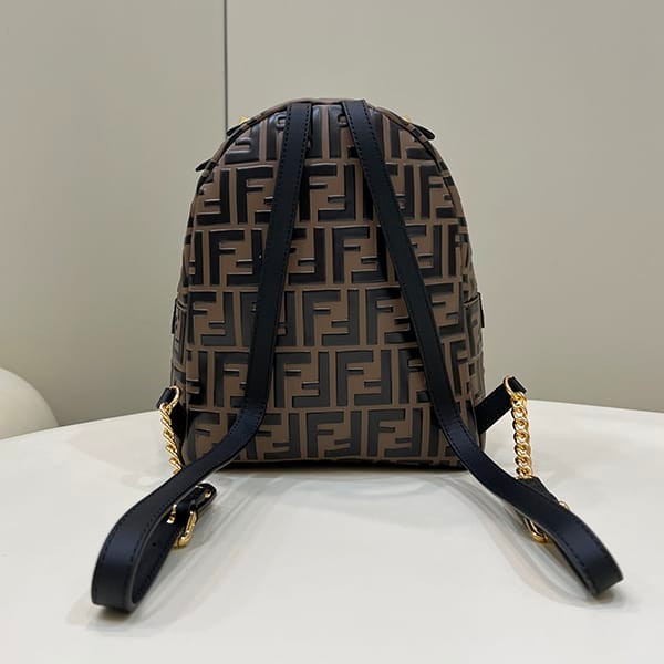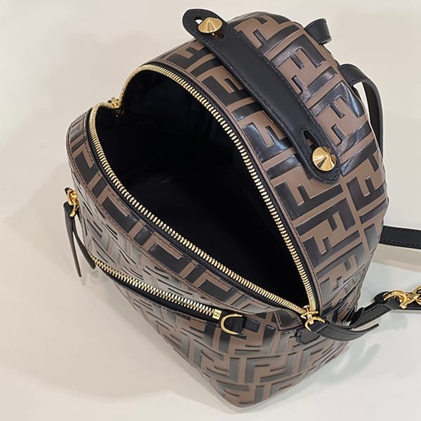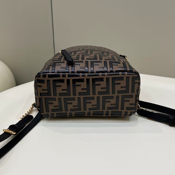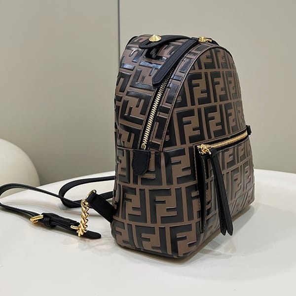 Fendi replica small brown leather FF backpack 8BZ038A5TL