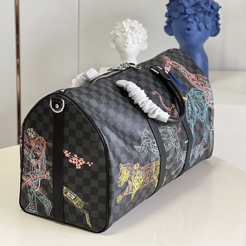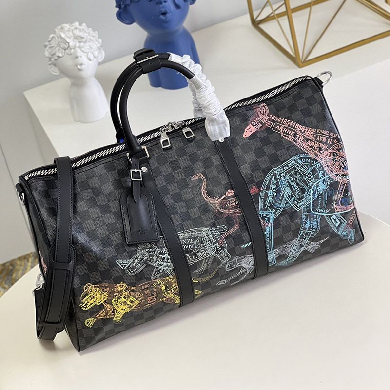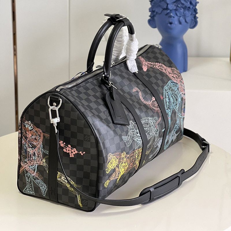 Brand: Louis Vuitton replica Rare Louis Vuitton Keepall Bandouliere 50 Boston bag replica Animal N45281 Men's fashion - Bags - Boston bags Size: 50 x 29 x 23 cm (width x height x depth) Material: Damier Graphite stamp canvas Trimming: leather (leather type: cowhide) Lining: textile Metal fittings (color: silver) Specifications: Zip closure Inner zipper pocket Removable name tag Strap: removable, adjustable Length from the top of the strap to the top of the bag (shortest): 36.0 cm Length from the top of the strap to the top of the bag (longest): 50.0 cm Handles: double Color: as shown in the photo (actual photo) Level: 1:1 (N-grade product)
