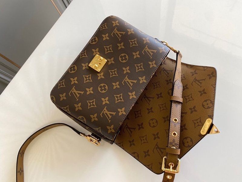 The distinctive school bag-like silhouette of the Pochette Metis MM attracts the attention of fashionable women. Made from trendy Monogram Reverse canvas and adorned with the Maison's signature gold-colored S-lock, this compact bag is perfect for any occasion. This multifunctional item boasts more storage space than it looks, and the chic top handle and detachable long strap allow you to enjoy a variety of styles.