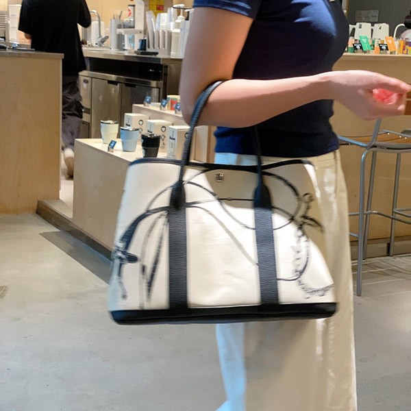 A new Garden Party item inspired by the Maison's archive photos. With a texture reminiscent of film photography, it features various equestrian motifs such as saddles. It features a unique frame print that combines the clarity of lines with the stamp effect of film. The size is W36×H26×D17cm, and it will be useful for short trips.
