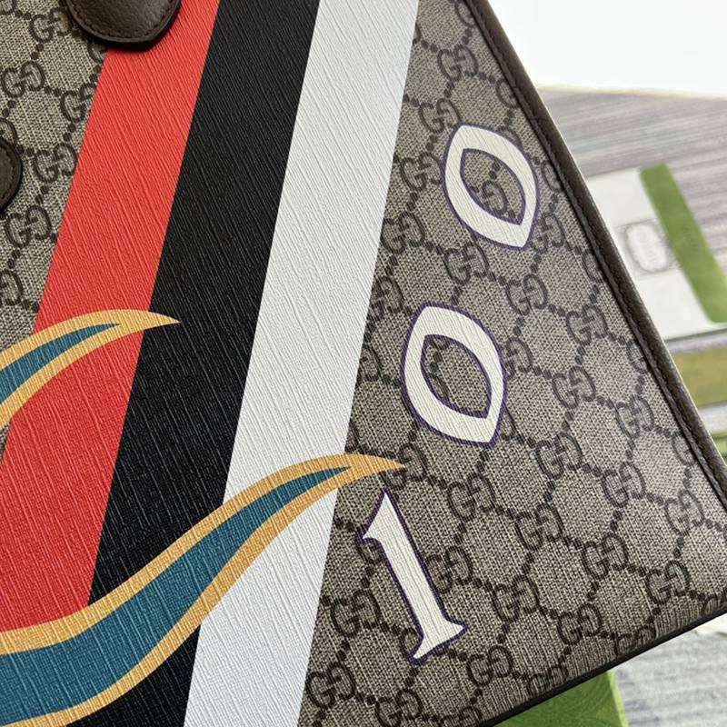 Beige and ebony GG Supreme canvas (environmentally friendly material) with geometric and Web stripe print