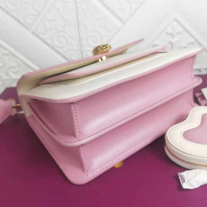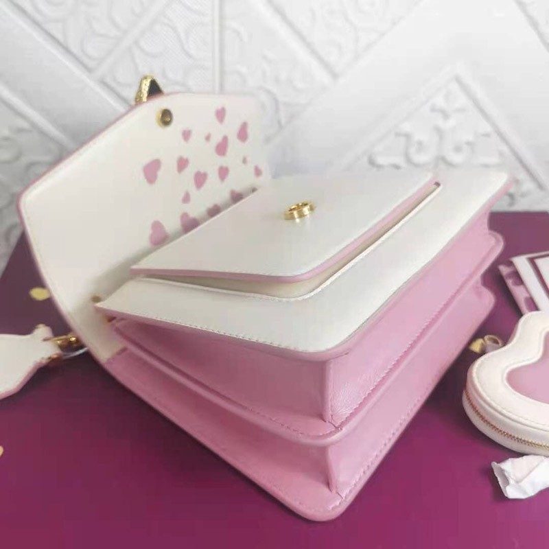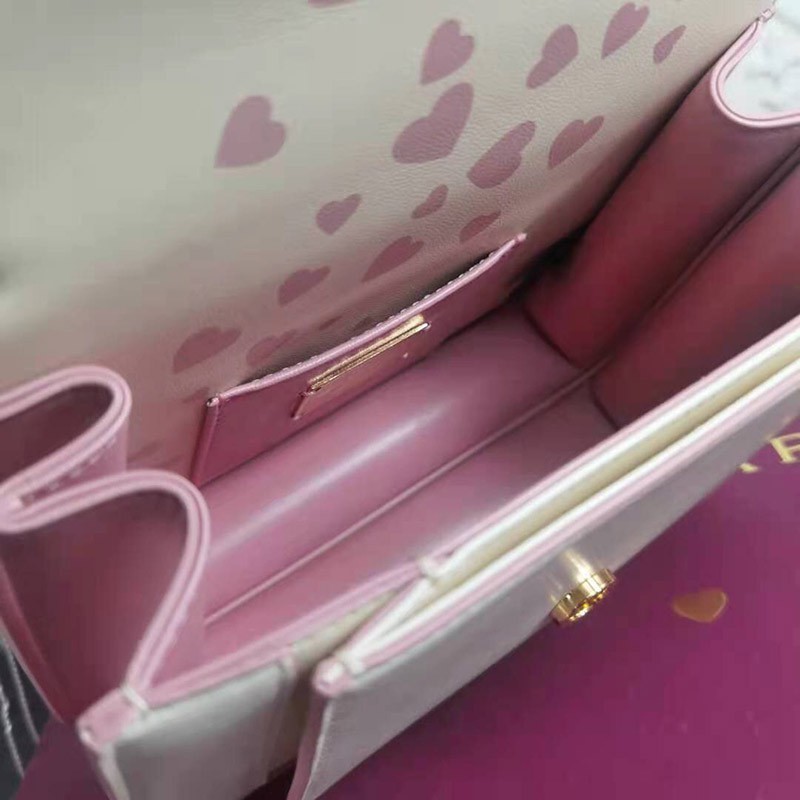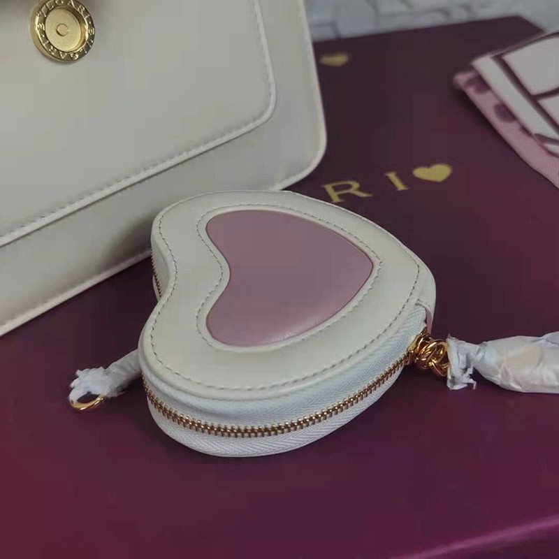 Heart-shaped coin purse: made of ivory, opal, white and flamingo, quartz, pink lambskin
