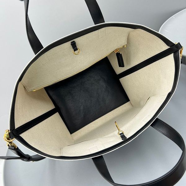 This tote bag is crafted in black canvas with tonal smooth leather details.
