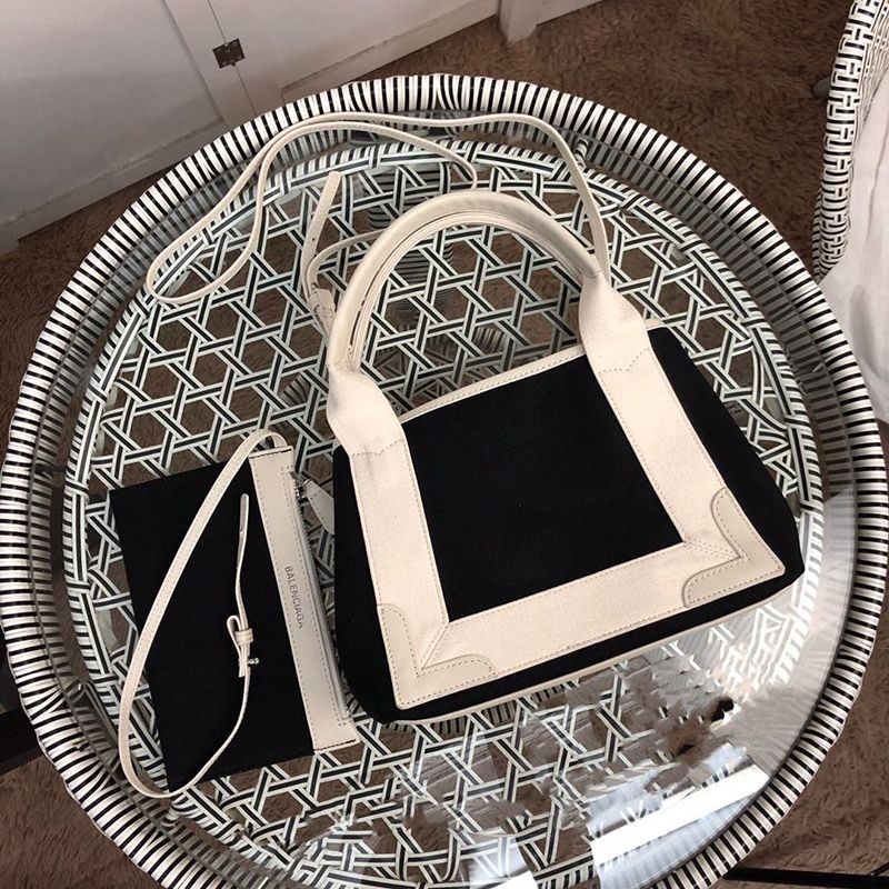 Balenciaga Navy Cabas Copy XS Tote Black x Beige