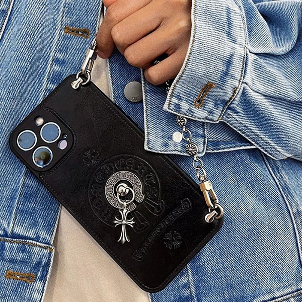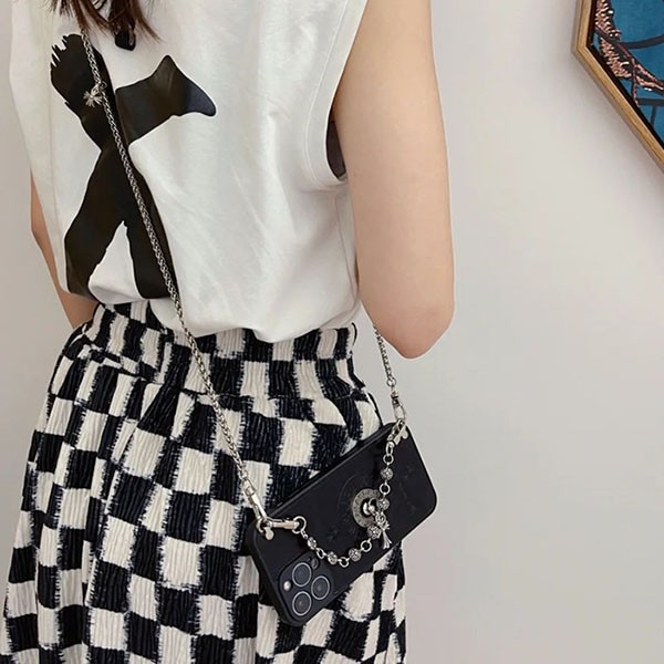 iPhone case with Chrome Hearts-style chain strap. Chrome Hearts' signature cross motif is a must-have for Chrome Hearts fans! It also comes with a chain strap to help prevent drops!