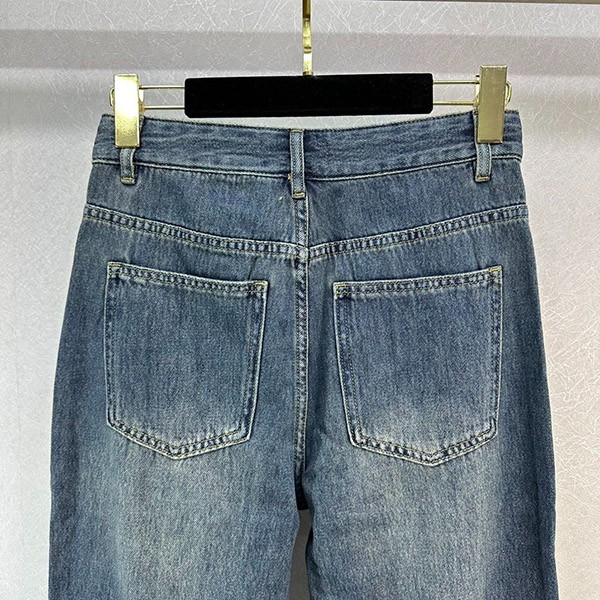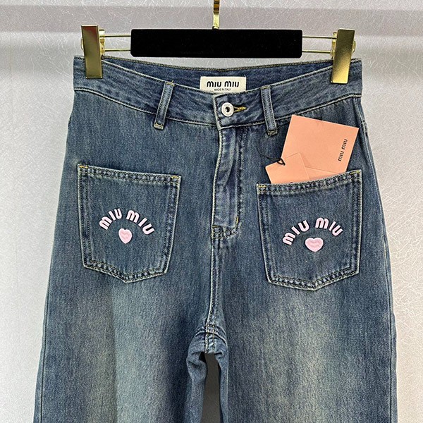 Popular Miu Miu Copy Logo Embroidered Denim Jeans