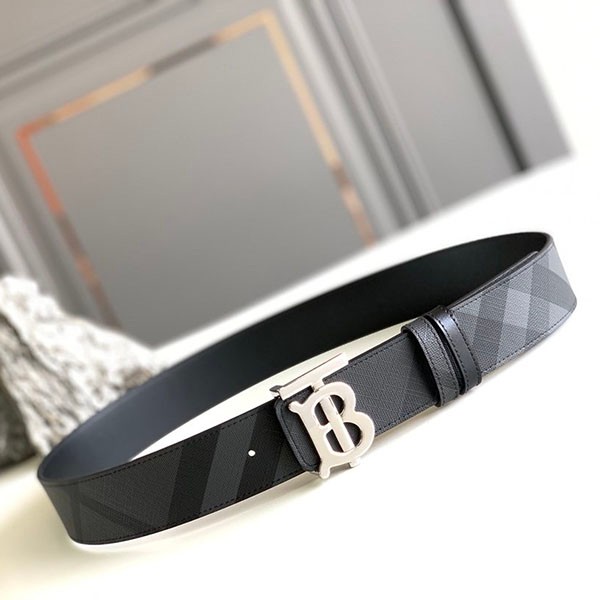 Burberry copy reversible charcoal check & leather TB belt