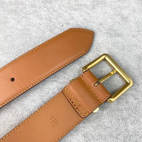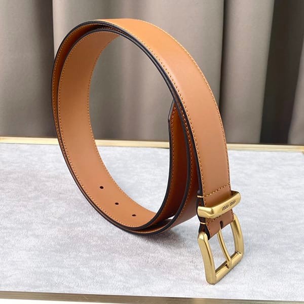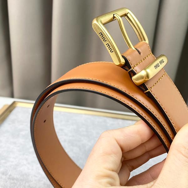 An elegant and minimalist leather belt with the Miu Miu logo on the belt loop.