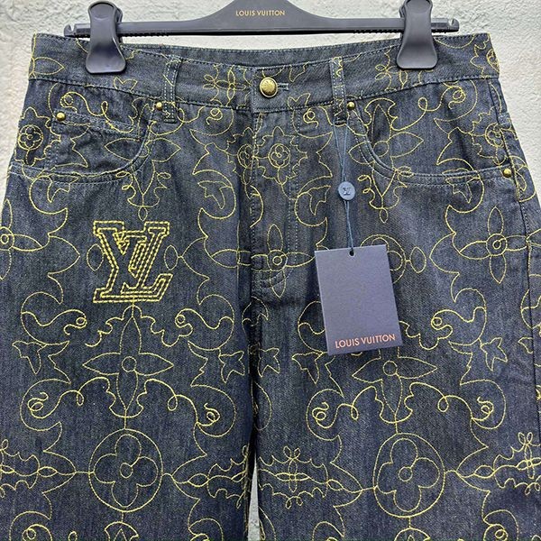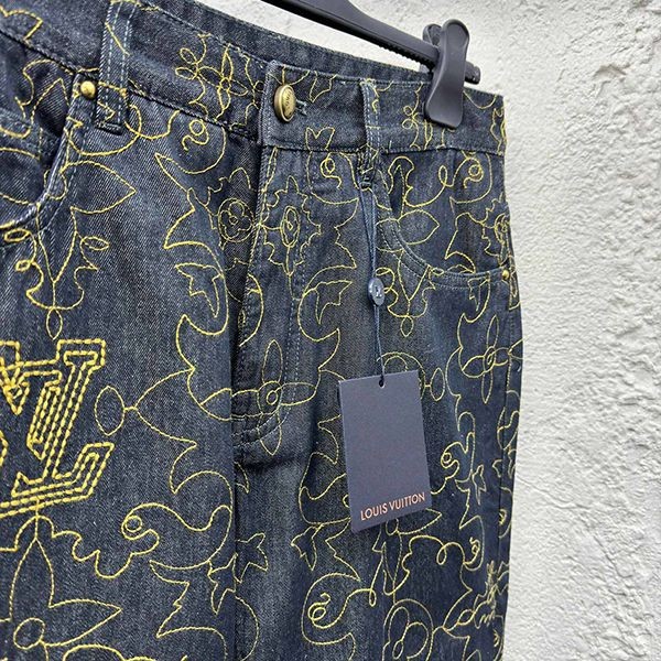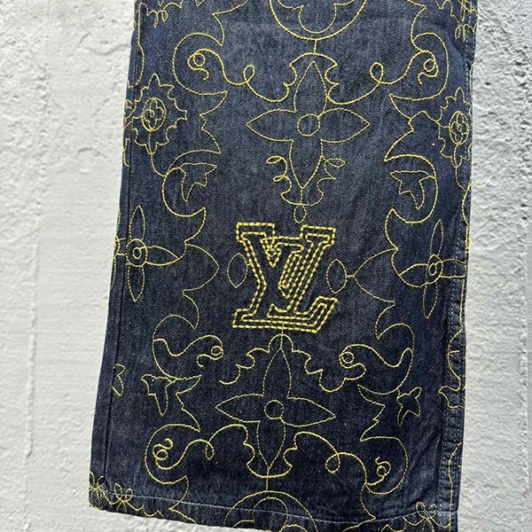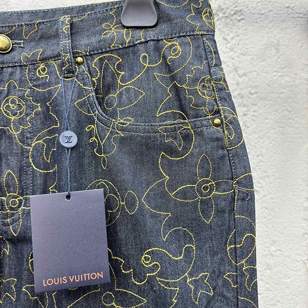 Super rare! Louis Vuitton embroidered denim pants replica